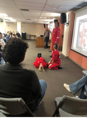 Στιγμιότυπο από τη Δράση με τίτλο «Η Ζωή είναι Πολύτιμη-Παροχή Πρώτων Βοηθειών» που πραγματοποιήθηκε δια ζώσης στον χώρο του ΞΕΝΙΑ του Πανεπιστημίου Κρήτης και παράλληλα εξ αποστάσεως με τη συμμετοχή προπτυχιακών και μεταπτυχιακών φοιτητών/ τριών.